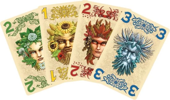 Uitdagend kaartspel voor 2 spelers Je claim op overwinningspunten versterken of het aantal overwinningspunten verhogen? Dat is het constante dilemma van Seasons. Elke beurt kies je twee van je handkaarten en geef je deze aan je tegenstander. Nu moet de tegenstander ??n kaart toevoegen aan de stapel met overwinningspunten van een bepaald seizoen en ??n kaart aan zijn eigen speelveld, waardoor hij meer kans maakt om de punten voor een specifiek seizoen te scoren. Nadat alle kaarten zijn gespeeld, scoort alleen de speler met de hoogste waarde van ??n seizoen in zijn speelveld alle overwinningspunten van dit seizoen. De speler met de meeste punten wint! Seasons is een kaartspel voor 2 spelers, dat met eenvoudige, intu?tieve spelregels toch moeilijke beslissingen en een gespannen duel cre?ert. Tegelijkertijd is er voldoende verborgen informatie om te kunnen bluffen en je tegenstander herhaaldelijk in hachelijke situaties te brengen.