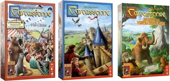 Uitbreiding op het populaire legspel Carcassonne Het circus reist rond in de omgeving van Carcassonne en overal waar het zijn tent opzet, stromen meeples toe. Je probeert je meeples in de buurt van de circustent te zetten om extra punten te verdienen, afhankelijk van een gedekt dierfiche onder de tent. Verder kun je je meeples nu ook als artiest inzetten en daar bij een speciale puntentellingen 5 punten per stuk mee verdienen. Circusdirecteuren zijn gewone meeples, maar krijgen extra punten als ze hun werk in de directe omgeving van het circus of artiesten doen. In combinatie met het basisspel is deze uitbreiding met ten hoogste 5 spelers te spelen, maar met Kathedralen & Herbergen kan er nog een speler meedoen. Wij adviseren deze uitbreiding alleen met het nieuwste basisspel van Carcassonne uit 2016 te combineren voor de beste speelervaring, maar Het Circus is ook nog te spelen met het oude basisspel en de uitbreidingen. De tegels hebben een nieuwe stijl tekeningen, maar de achterkanten zijn gelijk gebleven.