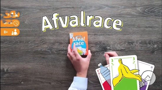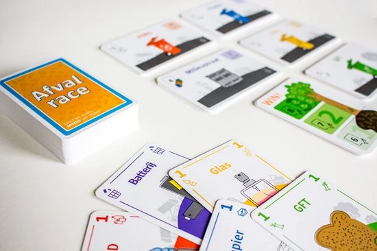 Met het kaartspel Afvalrace sorteer je de afvalkaarten in je hand en verzamel je alle soorten containers. Of laat een boom groeien door GFT-afval te verzamelen. Plaag je medespelers door vuilkaarten in hun containers te gooien. Wie het snelst alle afvalcontainers of een volgroeide boom heeft, wint het spel! Het kaartspel is ontwikkeld om op een leuke manier afval scheiden te leren. Geschikt voor jong en oud. Hoe ouder de spelers, hoe tactischer er gespeeld wordt.