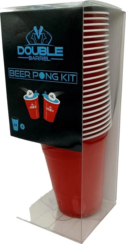 Double Barrel Bierpong Set – Beerpong – Bier – Drankspel – Cadeau – Ping Pong – Drankbekers – Red Cups – Drinken – 28 Delig