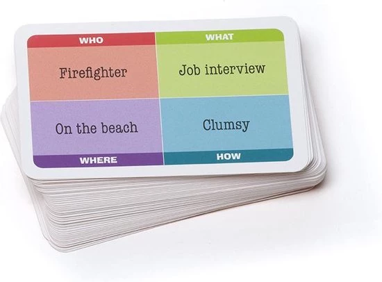Ideaal voor de spreekvaardigheid, maar ook bij creatief schrijven, verhalen vertellen, taalspelletjes en last but not least in de dramales. Wat je er allemaal mee kunt doen, kun je vinden op https://www.dramanerds.nl/gebruik-kaartjes