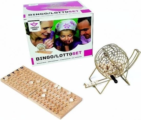 Longfield Games Lotto/Bingo set Voorzien van sierlijke molen en balletjes met de nummers 1 t/m 90. Specificaties: Materiaal bord: hout Materiaal molen: staal Diameter molen: 18 cm Inhoud: 1 Molen 1 Controle bord 90 Balletjes