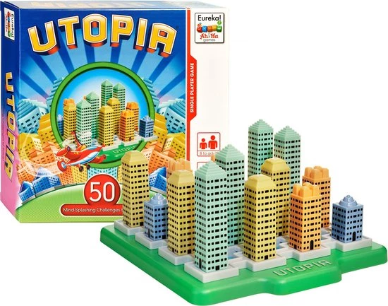 Zet je figuurlijke bouwhelm op en begin met bouwen op deze bouwplaats in de stad Utopia. Je gaat een 3D model van elke landschap nabouwen. Bouw de zestien wolkenkrabbers op de juiste plaats.