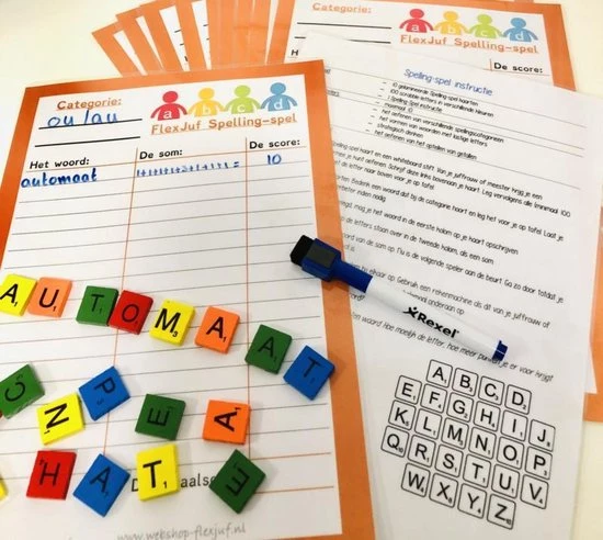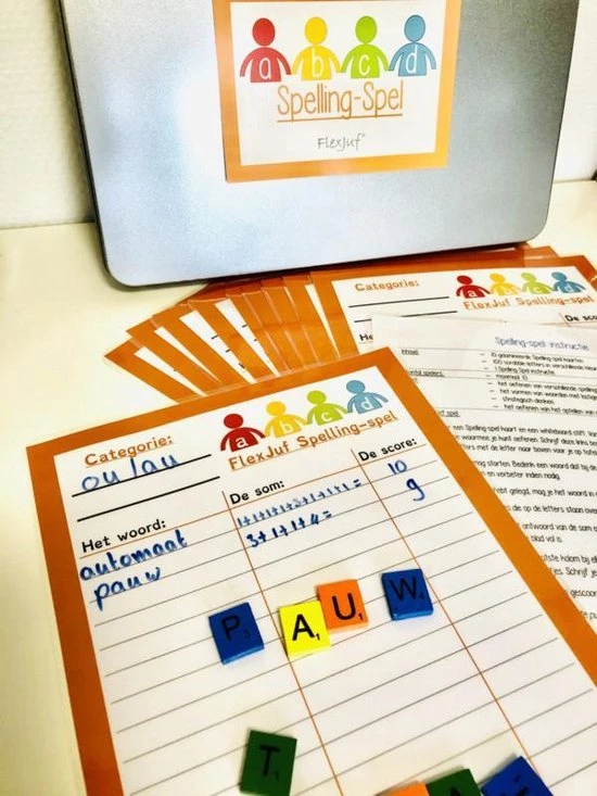 Een leuk spel waarmee je op ieder moment de gewenste spellingscategorie kan oefenen. De kaarten, scrabbleletters en stiften zijn ook los verkrijgbaar.