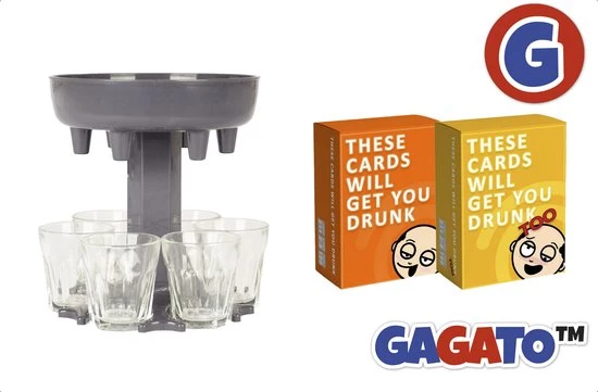 Gagato Set Kaarten – These Cards Will Get You Drunk & These Cards Will Get You Drunk Too – Inclusief Shot Dispenser Grijs – Drankspel – Kaartspel