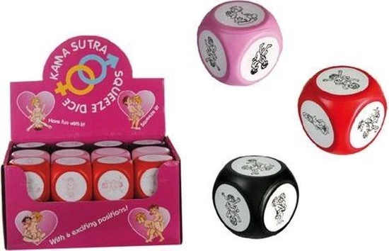 “Kamasutra dobbelsteen – Deze erotische dobbelsteen heeft een afmeting van 7 x 7 x 7 cm. Het heeft een afbeelding erop met een verschillende sexuele positie. De kleur van de dobbelsteen wordt willekeurig geleverd. Het zal ideaal zijn als accessoire op Valentijnsdag!”
