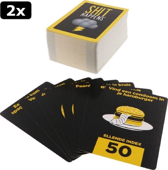 Shit happens.. Ja het leven valt niet mee.. Shit Happens is een hilarisch en weerzinwekkend, maar levensecht partyspel. Je komt allerlei ongewenste situaties tegen die je moet rangschikken op je ‘lane of pain’ die loopt van 1 tot 100. Wat is erger? Je vader in z’n nakie zien of elke nacht in bed plassen?