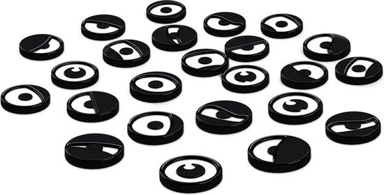 Het is mogelijk om meerdere Eyez op elkaar te leggen zodat je grotere paren vormt (3 of 4 gelijke Eyez) met de stapels die je al hebt. Hoe groter de paartjes, hoe meer punten ze opleveren natuurlijk. Maar, maak je een foutje en zijn de Eyez niet gelijk aan mekaar, dan krijg je helemaal geen punten voor dat paar! Degene met de meeste punten aan het einde van het spel, wint.