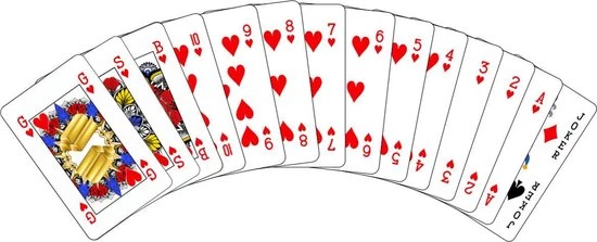 Alle andere kaarten van het spel zijn hetzelfde gebleven, van de 2 tot de Aas, en natuurlijk de 2 Jokers. Eentje neutraal en eentje full-color.