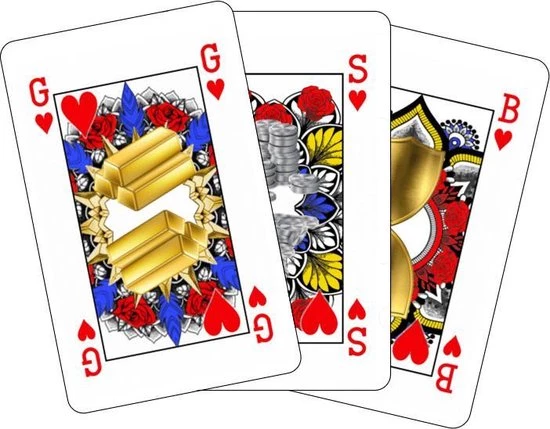 Standaard kaartenset van 52 kaarten: Aas, 2-10, Bronze, Silver, Gold.