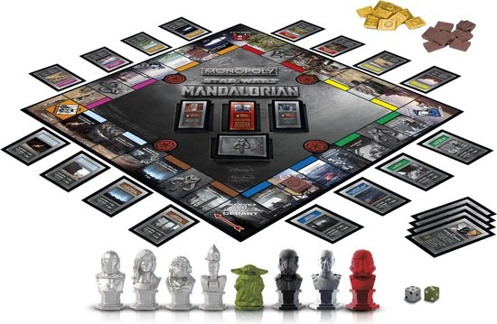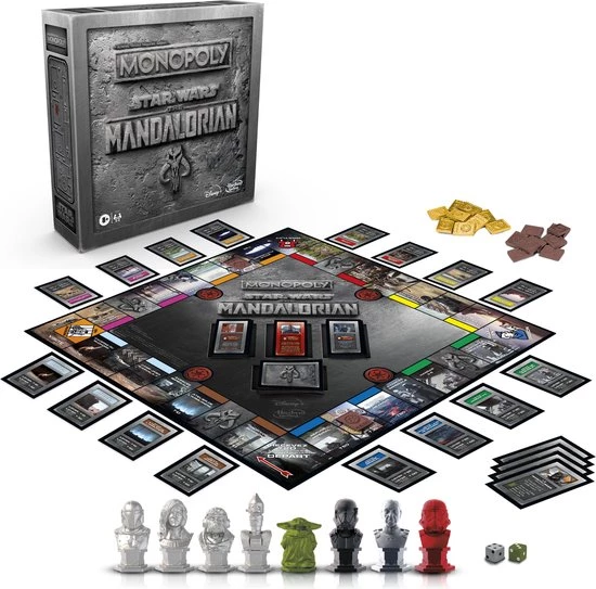 Stel je voor dat je rondreist in een gevaarlijk sterrenstelsel waar Keizerlijke vijanden de veiligheid bedreigen van Het Kind, het personage dat fans ‘Baby Yoda’ noemen. In het bordspel Monopoly: Star Wars The Mandalorian-editie kunnen spelers in de huid kruipen van de Mandalorian, Cara Dune, IG-11 of Kuiil. Met de pion van Het Kind kunnen spelers de speciale eigenschap van hun personage versterken en de unieke eigenschap van Het Kind gebruiken. Koop schuilplaatsen, win gevechten en verdien Keizerlijke tegoeden. De spelers met de meeste Keizerlijke tegoeden wint, maar let op! Als een Keizerlijke vijand Het Kind krijgt, is het spel voor iedereen afgelopen! Star Wars-producten worden gemaakt door Hasbro onder licentie van Lucasfilm Ltd. De namen en logo?s van Hasbro, Hasbro Gaming, Parker Brothers en Monopoly, het kenmerkende ontwerp van het spelbord, de vier hoekvakjes, de naam Mr. Monopoly en het figuurtje, evenals elk van de kenmerkende elementen van het bord en de pionnen zijn handelsmerken van Hasbro voor haar beroemde gezelschapsspel en toebehoren.
