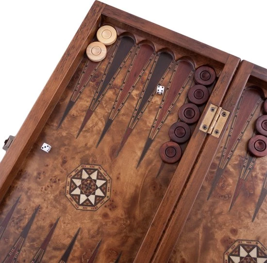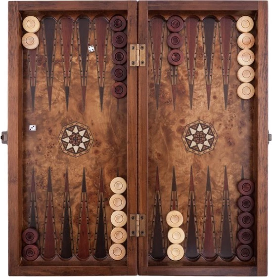 Dit stijlvolle handgemaakte backgammon set is een mooie cadeau voor elke liefhebber van backgammon.