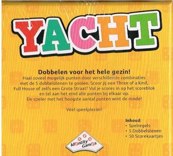 Identity Games Yacht ! Dobbelen Voor Het Hele Gezin. Speelduur 30 Min. Vanaf 8 Jaar/ 2 Of Meer Spelers