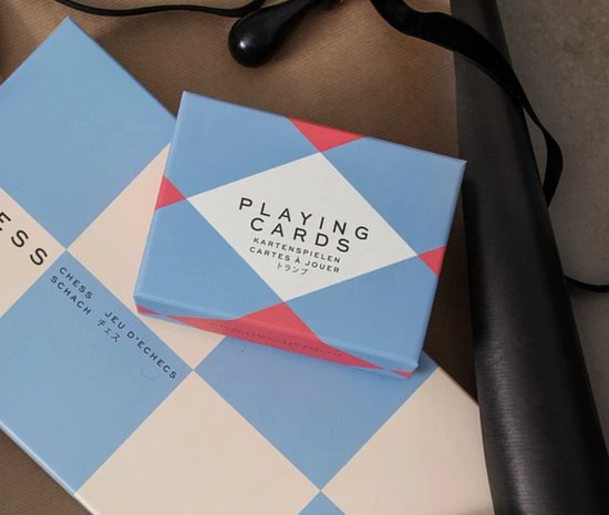 Speelkaarten met een nieuwe esthetische twist. Met een sober palet en uitgesproken afbeeldingen geven deze speelkaarten gegarandeerd een speelse kleurinjectie aan elk interieur en zien er zowel gespeeld als uitgestald even goed uit.