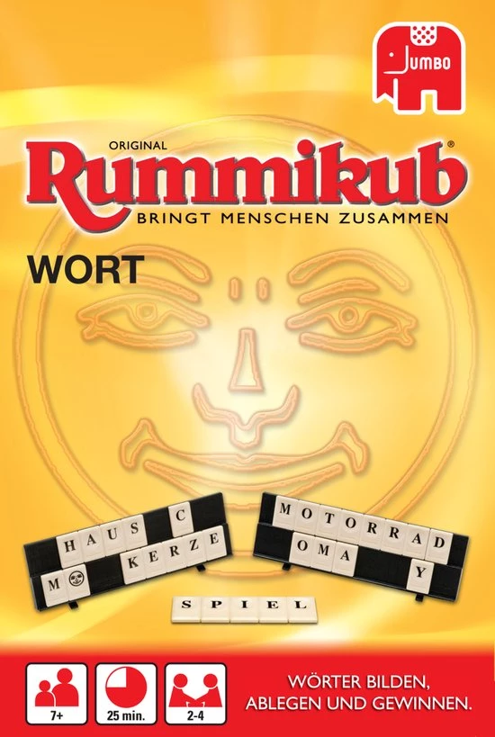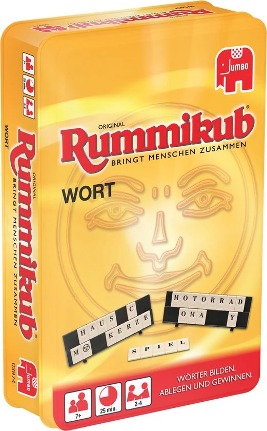 Rummikub WORT Kompakt. Genre: Bordspel met tegels, Speeltijd (max): 20 min, Doelpubliek: Kinderen & volwassenen. Breedte verpakking: 190 mm, Diepte verpakking: 45 mm, Hoogte verpakking: 130 mm. Hoeveelheid per container (20ft): 21000 stuk(s), Hoeveelheid per container (40ft): 42600 stuk(s), Hoogte pallet: 2 m