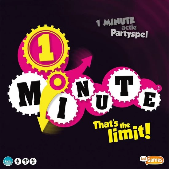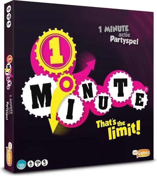 1 Minute is een razendsnel partyspel. Je speelt in twee teams die van alles moeten doen: tekenen, uitbeelden en omschrijven. O ja, klein probleempje: voor je het weet tikken de seconden weg, je hebt namelijk maar 1 minuut om de opdracht uit te voeren; sorry!