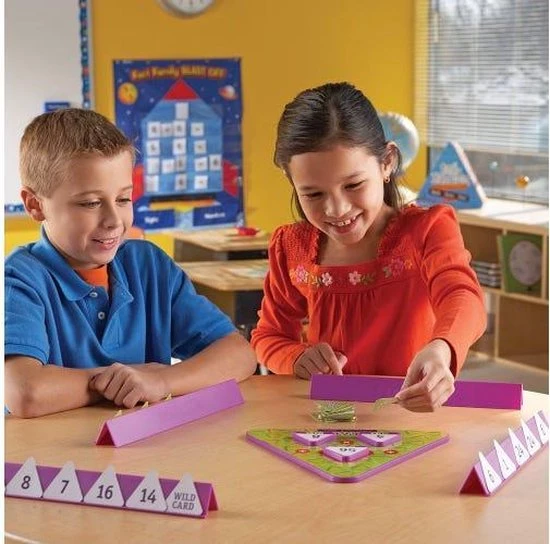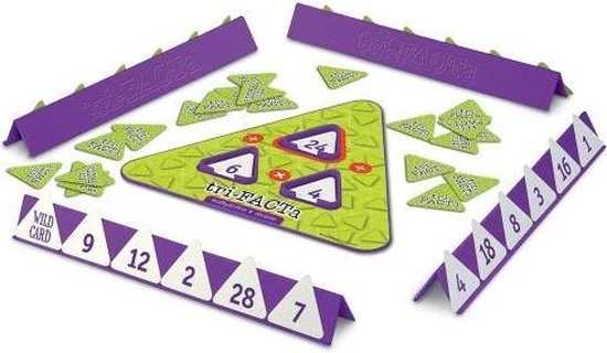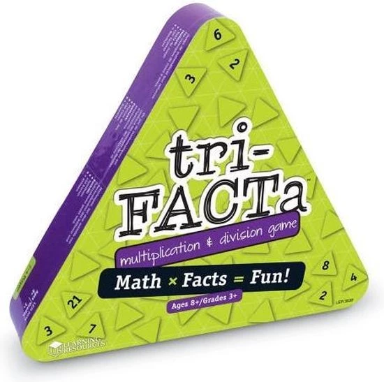 Tri-facta: Vermenigvuldigen & delen helpt je oefenen met vermenigvuldigen en delen. Vermenigvuldigen en delen is leuker als je Tri-facta speelt! Het driehoekige spelbord is ideaal om te oefenen met ‘familiesommen’ of ‘vriendjessommen’ en draagt op een beeldende manier bij aan getalbegrip.