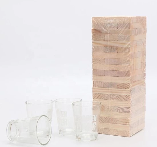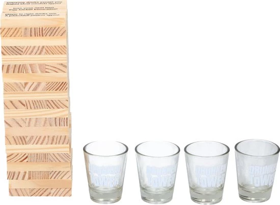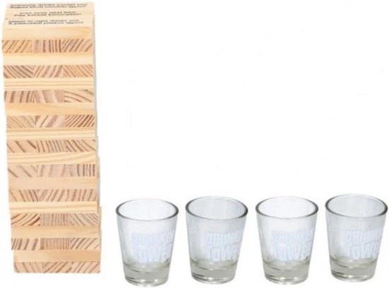 Valt de toren bij jouw beurt? Dan moet jij jouw shot in een keer leegdrinken.