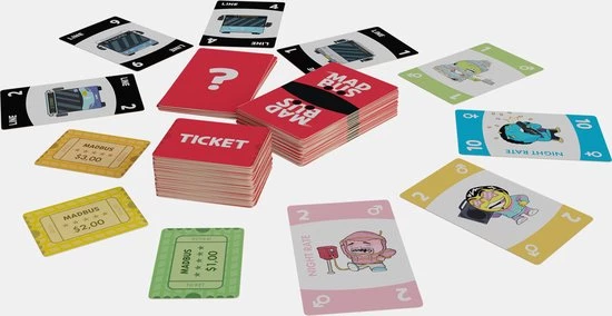In MadBus maken de speelkaarten het gemakkelijker om het spel onder de knie te krijgen. Met de unieke passagierskaarten, kun je tickets uitdelen aan je medespelers. De waarde van deze tickets tel je in het einde bij elkaar op. De speler die dan op het hoogste getal uitkomt is de lul en moet in de bus.
