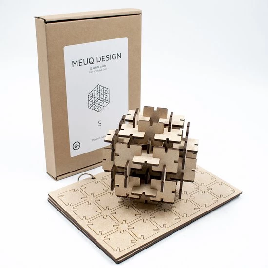 Deze houten IQ puzzel is gebaseerd op de geometrische lampenreeks van MEUQ Design. De puzzel is een uitdagend klein werkstuk dat enige denk inspanning vereist. Met deze originele onmogelijke puzzel ben je zeker een tijdje zoet!