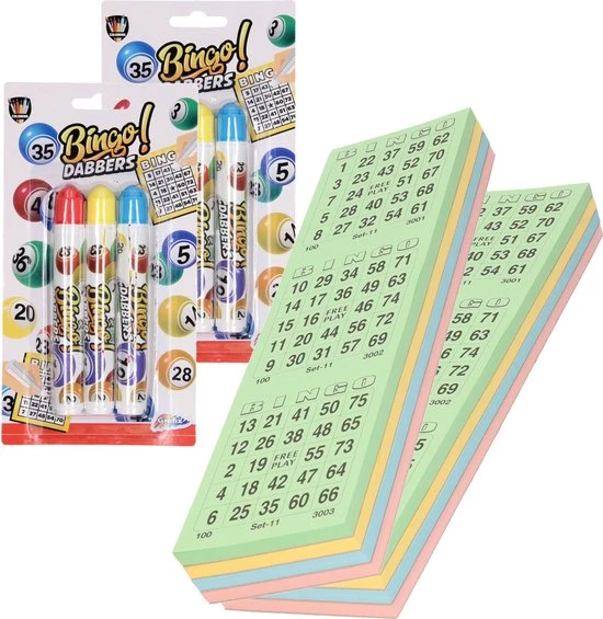 Inclusief 6x bingo stiften blauw, geel en rood. Met deze handige bingo stiften zet u snel en makkelijk stippen op de nummers met bingo.