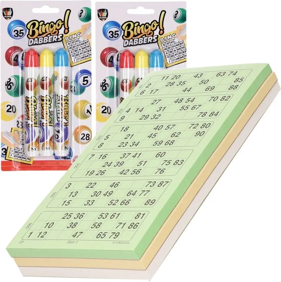 - 2x 3x Bingo stiften/markers blauw/geel/rood