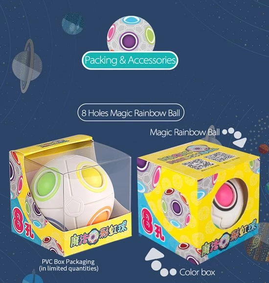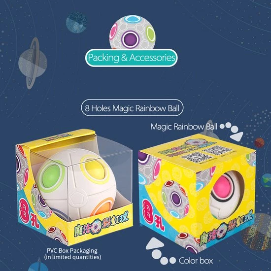 De MoYu Rainbow Ball is een leuke puzzel voor alle niveaus om van te genieten. De miniversie heeft slechts 8 gaten versus 20 op de normale versie, waardoor het gemakkelijker op te lossen is. Het doel is om de opening te gebruiken om rond de gekleurde ballen te bewegen en ze te matchen met dezelfde kleurring.