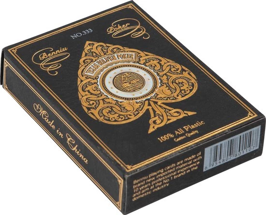 100% plastic speelkaarten zwart met goud staan internationaal bekend om de kwaliteit en lange levensduur.