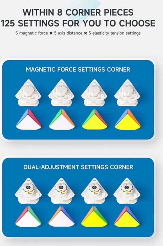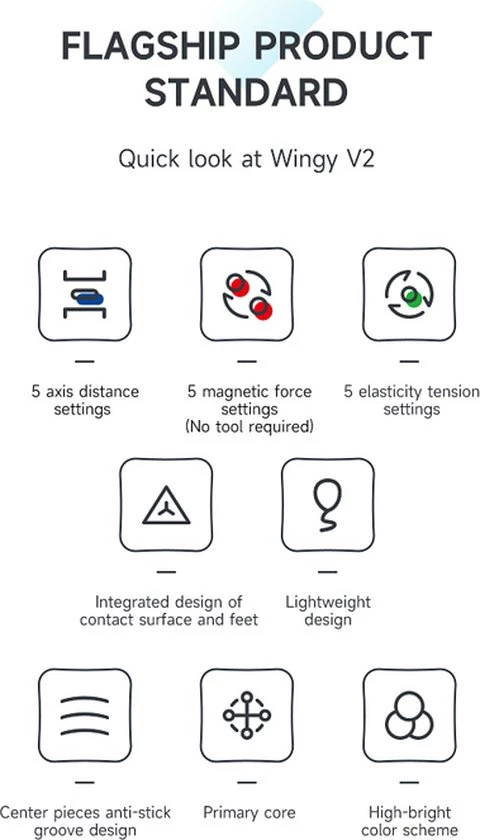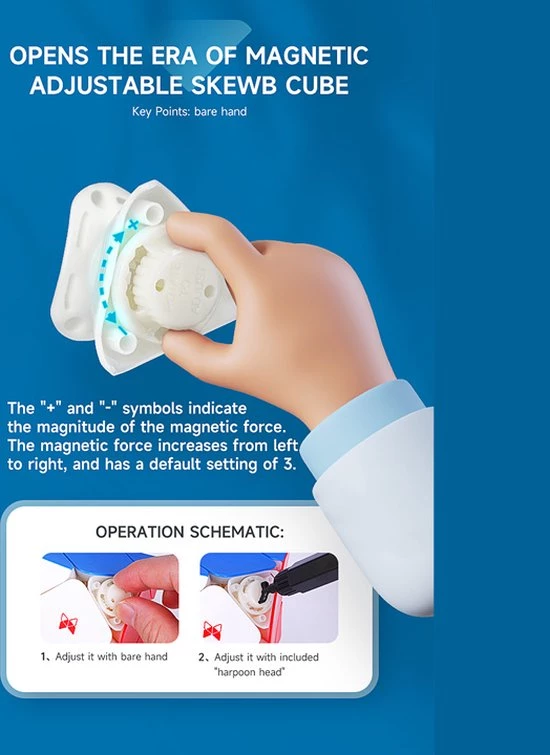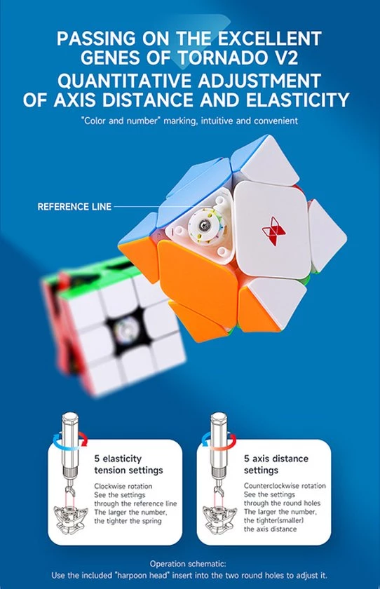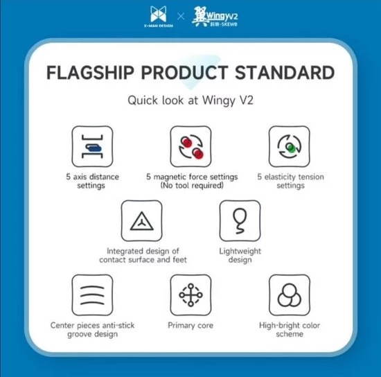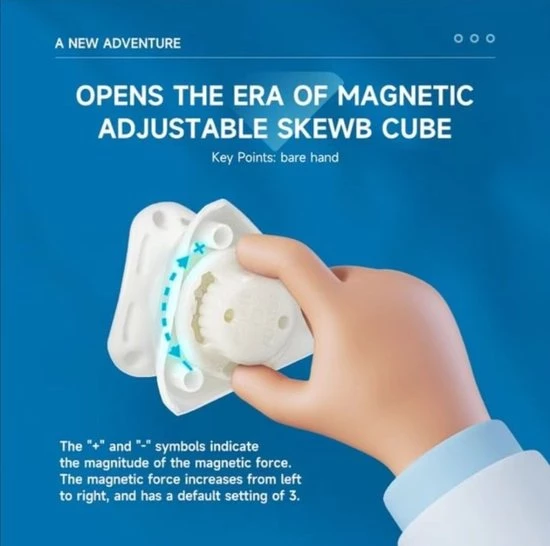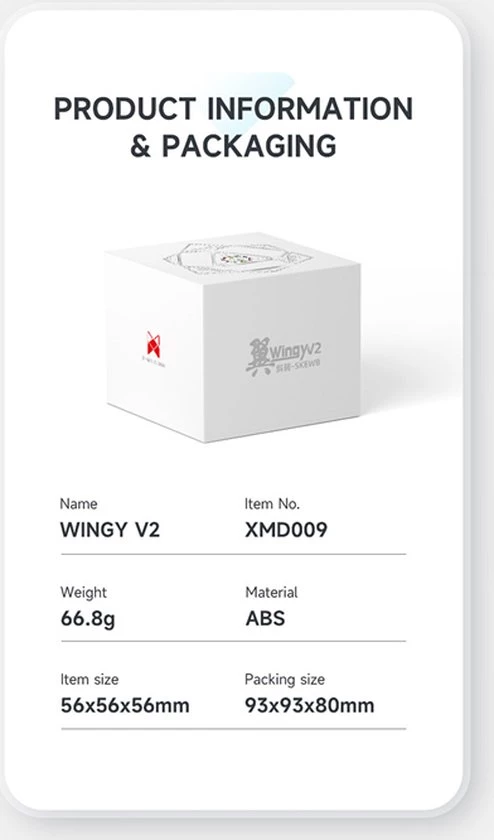 De QiYi X-Man Design Skewb V2 M Wingy is de opvolger van de magnetische QiYi Wingy Skewb die erg populair was. Daarnaast is dit de eerste skewb waarbij de magneet sterkte, spring compression en axis distance kan worden ingesteld! Het wings/concave design van de skewb zorgt ervoor dat het makkelijk en goed vast te houden is en het zorgt er ook voor dat de skewb makkelijker is om te draaien. Dit is dus echt de skewb om te hebben als je sneller wilt worden of al snel bent!
