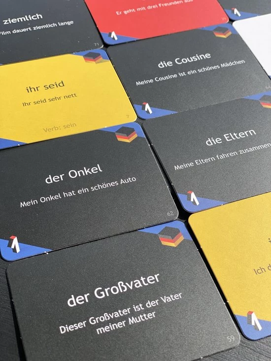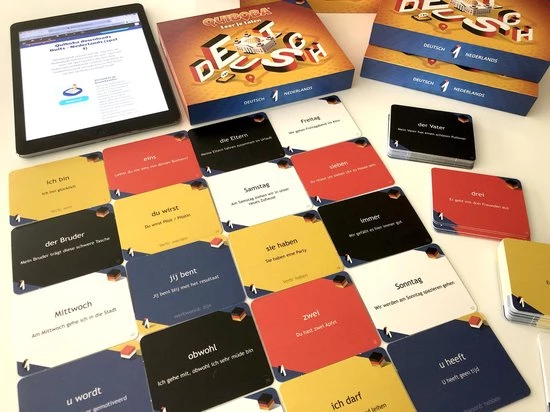 Met het taalspel leer je op een simpele manier, en op je eigen tempo, de basis van de Duitse taal. Het is een leuk spel met kaartjes, oefenmateriaal en podcasts. Je speelt het alleen of samen, thuis of onderweg, beknopt of uitgebreid, het kan allemaal!