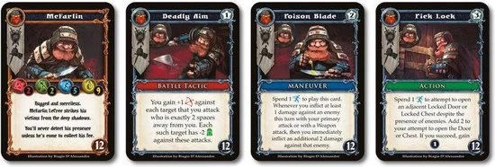 Dungeon Alliance is a deck-building, dungeon-crawling miniatures adventure game that allows players to send 1-4 different teams of adventurers into perilous dungeons in search of experience and treasure. At the start of the game, each player drafts their own team of four heroes (from the 17 included in the game) and uses tactical movement and card play to overcome the dungeon’s monsters and treasures. Each player starts with a unique twelve-card starting deck that includes the starting cards from all four of their heroes.