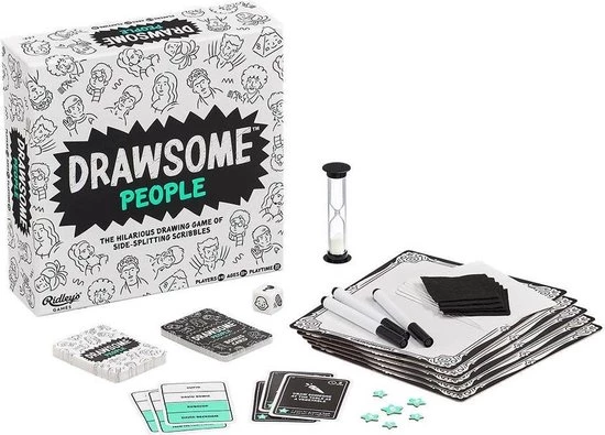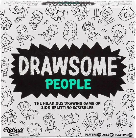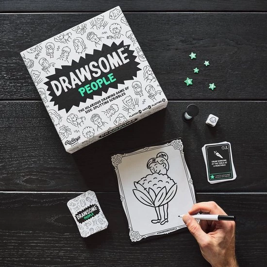 Heb je je ooit afgevraagd hoe je er uit zou zien als groente, of met een gigantische baard? Kom erachter met Drawsome People, een hilarisch tekenspel van lachwekkende tekeningen van Ridley’s Games! Teken beroemdheden, je medespelers of karakters van televisie en videospellen in dit komische gezelschapsspel!