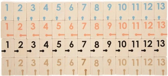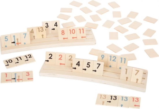 Dit klassieke strategiespel trekt niet alleen veel aandacht vanwege het moderne ontwerp met verfijnde gouden accenten, trendy pastelkleuren en natuurlijk hout; dit spel van Rummy is ook een winnaar als het gaat om functie! De grijpbare houten speelstukken liggen bijzonder prettig in de hand en kunnen rechtop in de stabiele, driedelige, licht afgeronde pop-uphouders worden geplaatst, waardoor ze voor u, maar niet voor uw tegenstanders, goed te zien zijn! Wordt geleverd met hoogwaardige speldoos voor opslag. Goed zichtbare kleurcontrasten en symbolen op de speelstukken maken het spelen gemakkelijker, zelfs bij weinig licht. Het doel is om rijen en paren te vormen met de individuele speelstukken. Wie de stukken vakkundig en op de juiste plaatsen kan combineren, heeft als eerste geen speelstukken meer en is daarmee de winnaar!