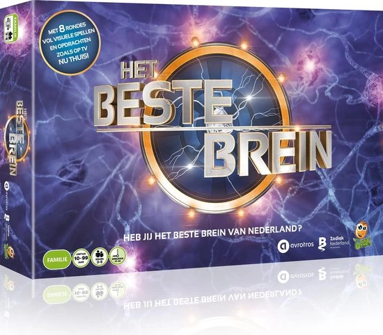 Gefeliciteerd? je bent op weg om ?Het Beste Brein? te worden! Die titel pak je in een spannende strijd vol visuele spellen en opdrachten gebaseerd op de immens populaire TV quiz. En dat alles zonder ook maar ??n kennisvraag want dit leuke bordspel draait volledig om boerenslimheid: een combinatie van gezond verstand en goede intu?tie. Je hoeft absoluut niet gestudeerd te hebben of over veel kennis te beschikken?